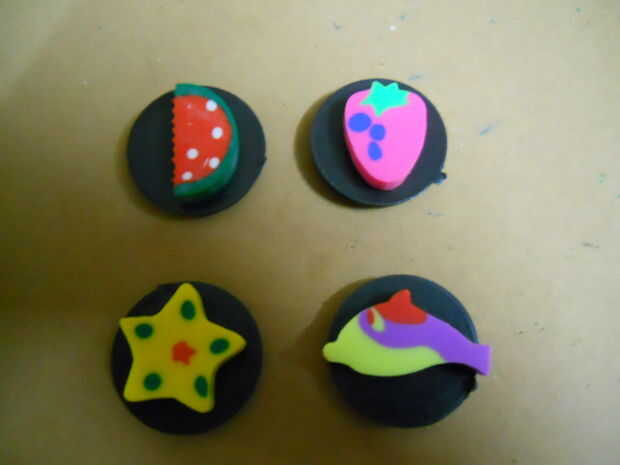 Agregue pegamento de un lado y pegarlo en la tapa de la botella.