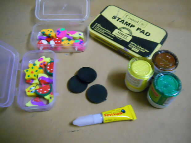 Utilice el cojín de tinta colores para estampar.