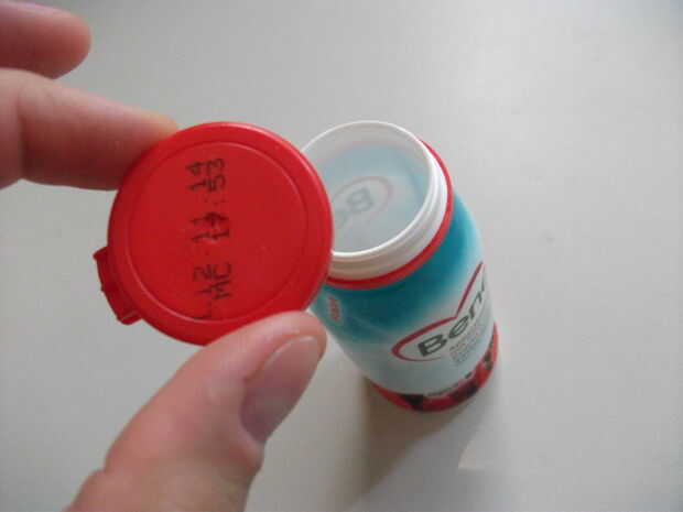 Consejo: puede eliminar las fechas de caducidad de la tapa (si hay alguna) con alcohol o acetona.