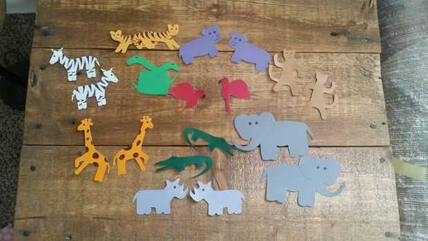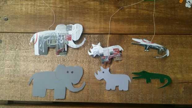 En la parte posterior de las muestras (o cualquier papel utilizas) dibuja el contorno de los animales, plantas y cualquier otra cosa va a estar en tu móvil. como se puede ver en las fotos, mis dibujos no eran perfectos pero para mi solo sirve como una guía. Cuando se les Recorte Asegúrese de doblar el papel para que tenga dos imágenes de espejo uno del otro para ocultar la parte posterior de la muestra.