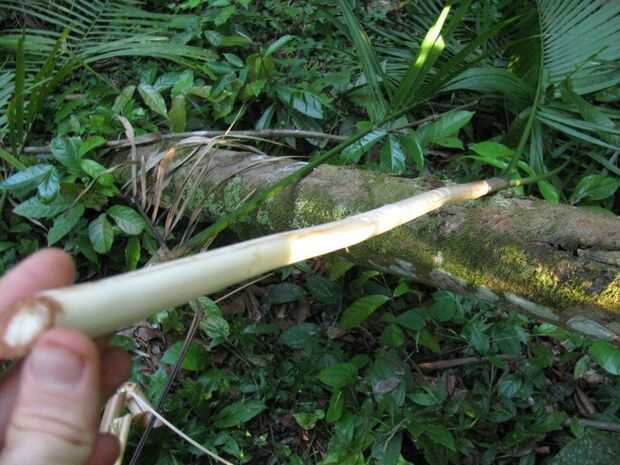 Me que tenga en cuenta también que un machete esto haría todo mucho más fácil del proceso. Si estoy en la selva, generalmente siempre tengo un machete. Es la herramienta de la selva.