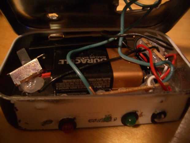 Tomar un cuadrado de PCB y Solde un resistor de brwn-blk-brwn (100 ohmios) y tome el cable de 6 CM de la línea de LED y a un extremo de la resistencia de la soldadura. Ahora el extremo positivo del clip de la batería de 9 voltios en el otro extremo de la resistencia de la soldadura. Ahora toma el extremo negativo de los clip de batería de 9 voltios y el extremo positivo del clip AA y soldar entre sí. Tome el extremo negativo del clip de la batería AA y fijar un Deslice el interruptor (ver imagen CIMG2470) y tome el cable muy corto a la derecha de la línea de LED y soldadura al interruptor también.
