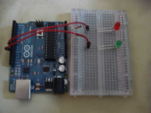 Ahora tienes que conectar las patas largas a los pines digitales y las piernas cortas a tierra, usando un resistor. Hay 2 pines GND (tierra) muy convenientes en la sección denominada POWER en el Arduino. Puse resistencias de A16 a uno de ellos y A9 para el otro. Luego, usando un trozo de alambre, había conectado B8 al pin DIGITAL 9 y B15 para pin DIGITAL 10. Allí! ¡ Listo! Simple como eso.