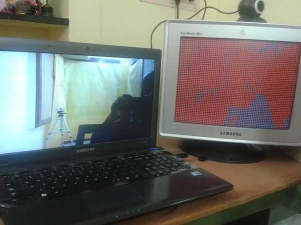 1) colocar el PC en el escritorio frente a la escena y enfocar la cámara para cubrir a toda la persona.