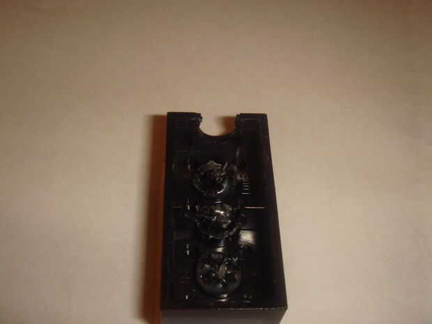 Coge el taladro / dremel y una de 5mm broca para taladrar metal. Perforar lentamente y con cuidado, perforar la parte superior del ladrillo, en el espacio exactamente entre 4 puntos adyacentes. Usted encontrará probablemente que la broca es algo mayor que el diámetro interno del tubo, en cuyo caso sólo taladro lejos lo suficiente en el tubo para permitir que un LED que encajan perfectamente, con su base al ras con la parte superior del ladrillo. Repita para los otros dos tubos.