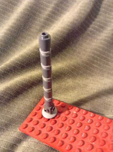 Coloque un plato redondo de 1 x 1 y el plato en la parte superior. Y luego el ladrillo de 1 x 1 con postes de madera por todos lados. Luego un ronda de ladrillo y una placa. Repetir hasta tener 3 ronda de ladrillos a la izquierda y no placas redondas.