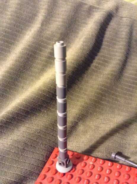 Añadir las tres última ronda ladrillos. Añadir lo que cuelga en la parte superior de la "torre" y fije la antena hacia los lados.