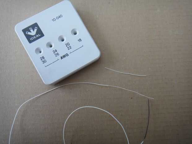 En la segunda foto, verás mi pelacables. Necesitarás uno de estos para el aislamiento del cable. Si no tienes un pelacables #30AWG, usted podría intentar anotar el aislamiento con un x-acto cuchillo y tirando de él; hay una mayor probabilidad a nick el alambre, que puede causar fatiga y rotura.