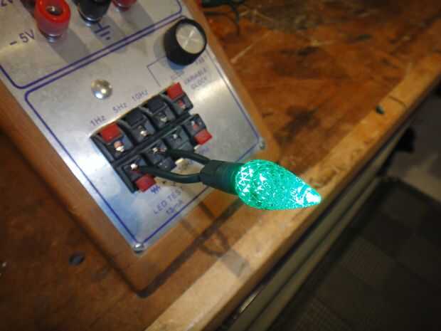 Primero corte un LED de la cadena de luces, tira de los extremos de los cables con un pelacables de # 14 AWG (American Wire Gauge) y el LED de prueba. Hacer esto para cada LED. No quiero molestar se rompe en una luz sólo para descubrir más tarde que fue quemado. LED duran mucho tiempo, pero puede quemar.