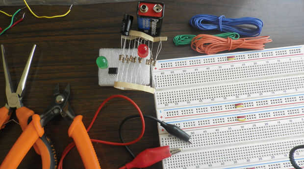 • 2 leds (uno verde y otro rojo)