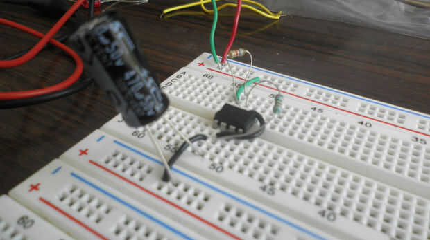 Cuando todos han conectado como las mejores fotos, es hora de nos pregunta sobre: ¿por qué elegimos esos valores de la resistencia una capacitancia? Bueno, la respuesta es muy simple, que valores de controlan el funcionamiento de nuestro 555. El tiempo de carga en el condensador y las resistencias controlan la interno transistor NPN actual y el funcionamiento del flip-flop. Puede changuing xperiment la capacitancia o las resistencias y buscar lo que pasa! ¡Vamos!