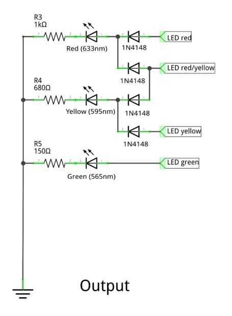 Hay cuatro salidas izquierda. Estas son las salidas para los tres LEDs.