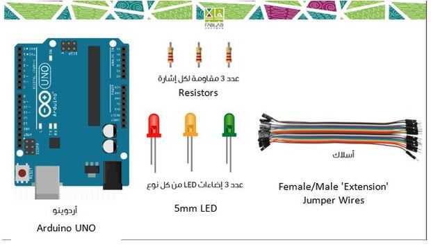 4 - إضاءات LED 5mm (عدد 3 لكل اشارة بالالوان: أخضر / أصفر / أحمر).
