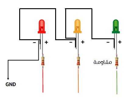 En cada semáforo, le Solde un resistor para el lado positivo. Entonces