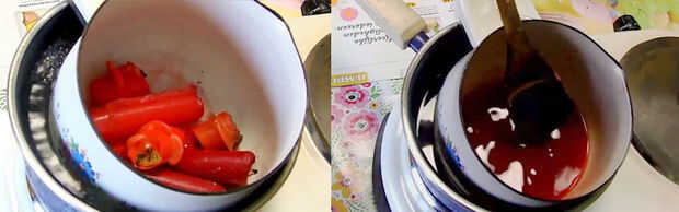 • Puso la izquierda sobre velas o ceras en el bote pequeño y deje que derrita agitando regularmente.