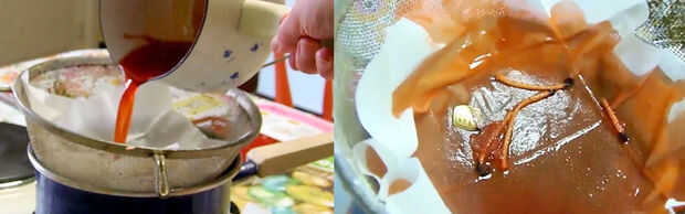 • Quitar la capa superior del tejido y coloque en el colador.