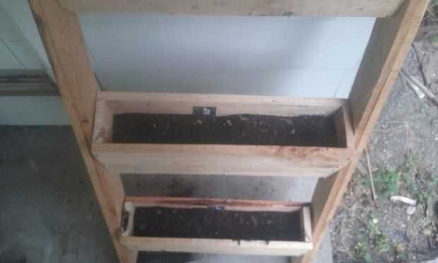 Estos jardines de plataforma están apoyado contra la valla en mi pequeño jardín urbano. Utilizo el interior espacio entre la tela jardinería 2 x 4 y grapa a la madera para crear una jardinera casi oculto, de aspecto rústico a mi espacio exterior.Usar
