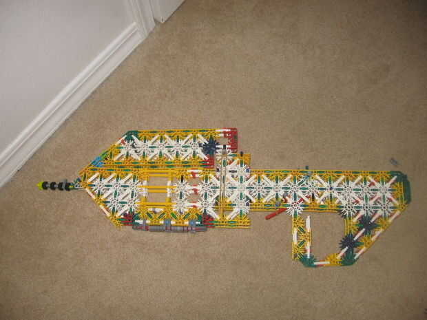 Ahora, en mi presentación, le dije que el concepto había sido utilizado dos veces antes. "El concepto", me refiero a la idea de Honda (creada por KillerK). Sin embargo, he modificado la idea de Honda para que se ajuste una revista. Tiene 5 balas y es semi automatico. Con una goma enorme, dispara cerca de 5 pies. Con dos cortarla, 10 pies. 3 cortarla, 21 pies. Con 4 cortarla, 34 pies. Con cinco cortarla, 46 pies. (La goma es más grande que una goma de brócoli, pero más así. Si ver la película sobre cómo la carga el arma, verás el tamaño de la goma. El video llamado Video de Halo muestra cómo cargar el arma y el tamaño de la goma.