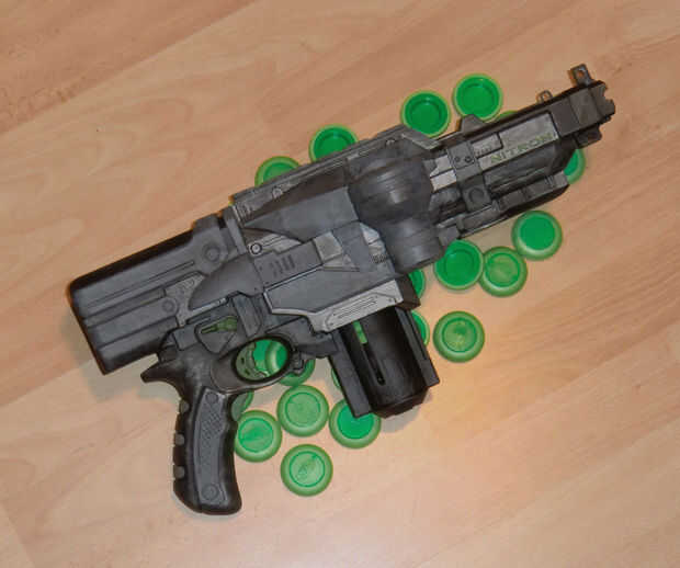 En este Instructable voy a mostrarle cómo mod un Nerf Nitron en una pistola semiautomática. ¿Usted podría preguntarse, quién en su sano juicio se convertiría un arma totalmente automático en medio automático? La respuesta es simple, le da un mejor control, es más ligero y que nunca ha disparado un Nerf Nitron sabe cómo ridículamente lento normalmente es. Esto, combinado con un mod de voltaje hace este arma simplemente increíble (ahora tarda 5 segundos en 20 disparos).