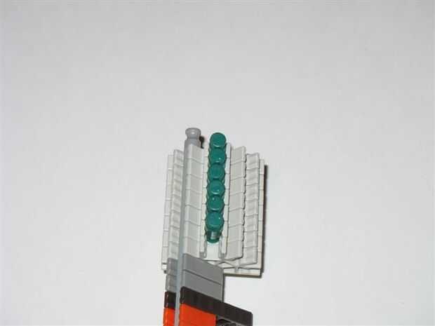 Esta es la parte de atrás del cañón. Sólo tiene que añadir 7 conectores gris/amarillo con 6 barras verde/negro en la parte trasera unos.