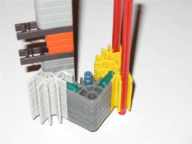Este paso es la adición de 6 conectores rojo y gris con 6 conectores gris/amarillo. En el conector gris/amarillo debe tener 2 de las barras del rojo. También agregar una barra azul en el conector rojo/gris.
