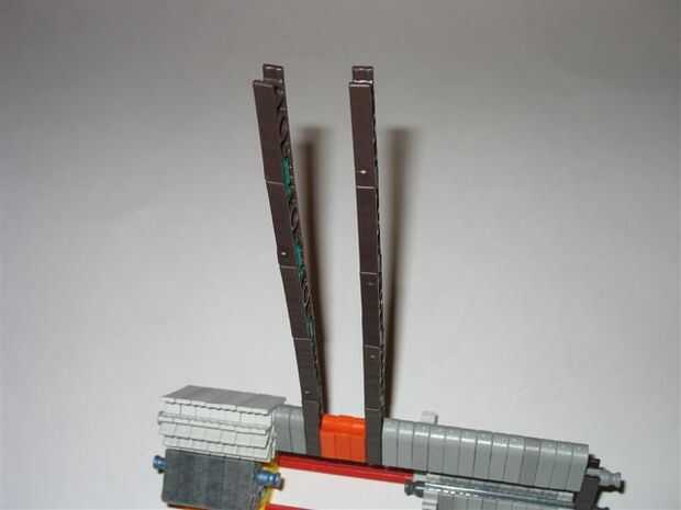 En este tutorial usted aprenderá cómo hacer una banda de goma semi automática pistola de K'NEX.Dependiendo de las bandas de goma usa, la pistola puede contener hasta 8 rondas de munición. Se dispara un tiro para cada tirón del disparador.En un anteri
