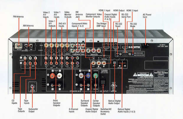 La parte posterior del receptor tiene suficientes conexiones para convertir tecnología hasta los más conocedores de las personas en alcohólicos. Ver el dibujo que simplificada a continuación para remediar esto. Coincidan las conexiones señaladas y olvidarse de todos los demás. Si el receptor se ve drásticamente diferente, siento decir que tenga que leer el manual.