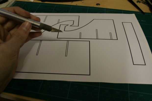 cortar todas las formas, de una almohadilla de corte con una regla de metal, si es posible (no quiere cortar su dedo)