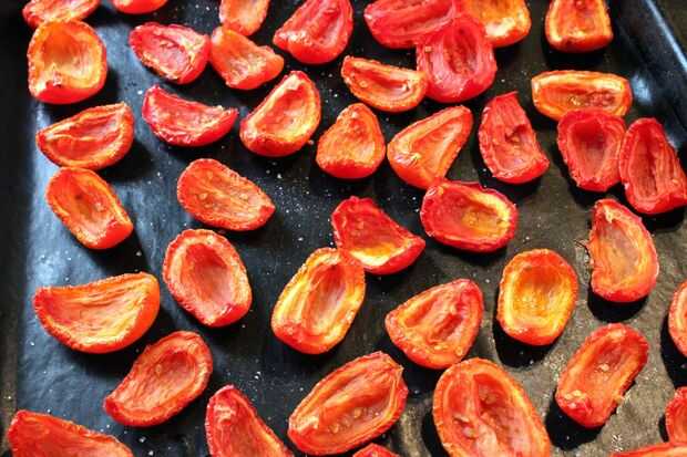 El tomate debe estar ligeramente suave. Si te gustan duras tienes que cocer al horno-seco al menos otros 2-3 horas.