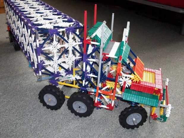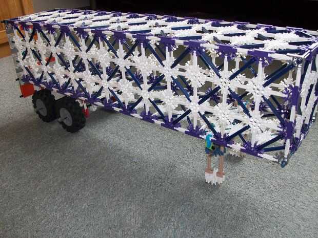 este es mi diseño de KVG camión y remolque. El carro es motor que tira del remolque, el remolque tiene una moto en la parte superior. Quiero darle crédito a Knex365 por el diseño del remolque. Debería publicar las instrucciones?? Me avisan en los com