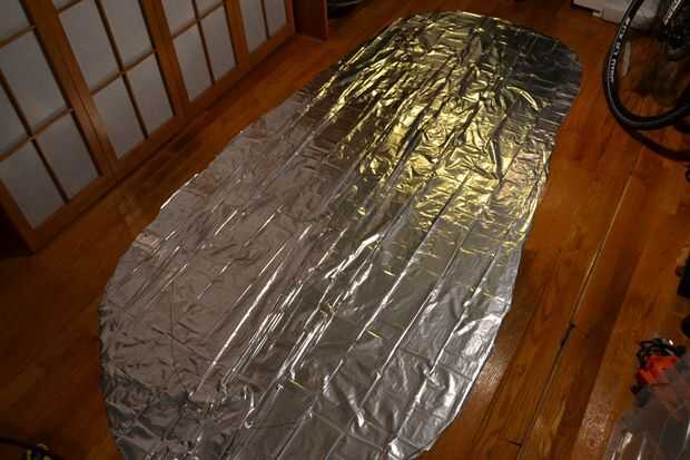 4. Añadir algo de espacio extra en el exterior, el espacio más mayor las paredes de la Semi-vivac será, por consiguiente el más profundo el charco se puede dormir mientras permaneciendo seco. Mi saco de dormir es 16" más corto entonces la manta, así que añadido 8" extra por todos lados.