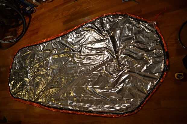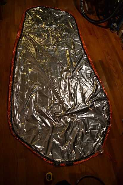 Para que la manta formar un cuenco alrededor de su saco de dormir utilizamos paracord para reunir los bordes, para esta se necesita a un canal los funcionamientos alrededor del borde de la manta.
