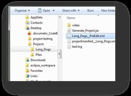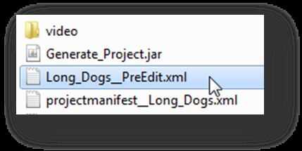 Este archivo automáticamente aparece en la carpeta principal y utiliza la Convención de nomenclatura, "PROJECTNAME__PreEdit.xml" (en nuestro caso de ejemplo sería "Long_Dogs__PreEdit.xml").