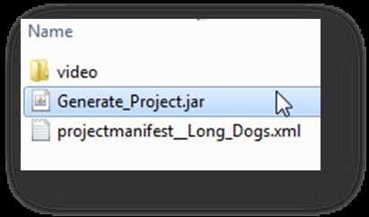 Luego, una vez que el material se ha recogido en el directorio "video" de la carpeta del proyecto, todo lo que tienes que hacer es doble clic en el archivo "Generate_Project.jar" incluido automáticamente, y una nueva secuencia se genera como un proyecto legible por Adobe Premiere (o un día, Final Cut Pro).