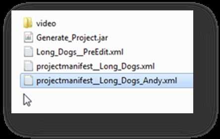 Solo descarga todos los vídeos recopilados de todo el proyectos en el mismo directorio de video en la misma carpeta de proyecto y luego copiar todos los archivos "projectmanifest" diferentes en la misma carpeta de proyecto. Luego ejecutar el "generar Project.jar".