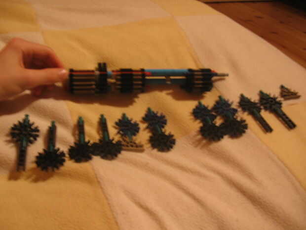En este tutorial usted aprenderá cómo hacer un arma de Gatling de la banda de goma (también conocido como "minigun") de K'NEX.Las características de arma 8 barriles que cada uno puede sostienen unos 4 gomas para un total de 32 rondas de munición