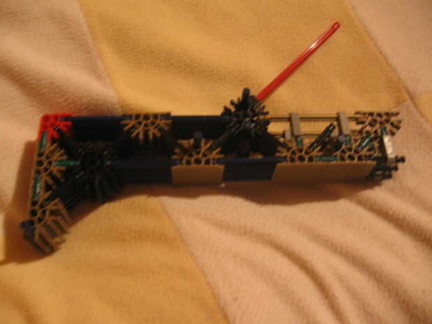 este arma es una pistola de 8 banda de goma tiro semiautomático con un giro, su hecho totalmente de K'NEX!!!!!! Cuando lo piensas bien es un muy simple mechinism, me topé con él mientras estaba tratando de disminuir el índice del fuego de un arma tot
