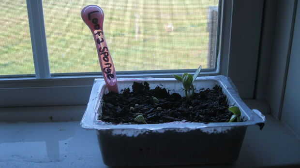 Agua lleno tofu viene en un envase de plástico que es absolutamente impresionante para las semillas. Esta es una de mis jardineras favoritas... tal vez porque era el primer brote de este año, pero de cualquier manera. Apenas se filtra, y ya es grande puede plantar un montón de semillas en ella.