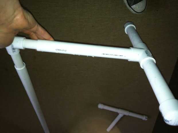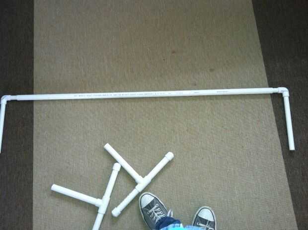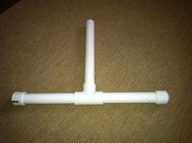 Tomar 6" piezas y deslice en la T para que sean paralelas. Puesto 9" pieza en la parte superior de la T para que el agujero es hacia arriba. Cap de los extremos. Desea utilizar las tapas, mantiene todo el aparato de balanceo una vez juntos.