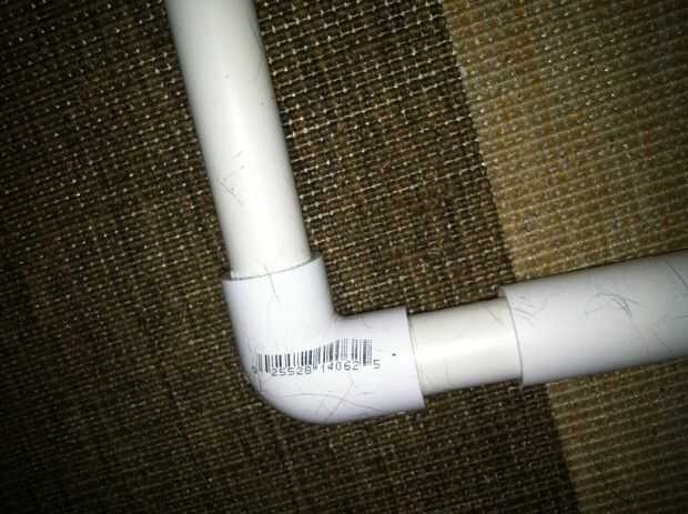 Deslice el tubo de 52" dentro de la tubería de 48" (aunque la tubería de 48" no es totalmente necesaria, lo hace más robusto). Ahora poner los codos en el extremo de la tubería de 52".