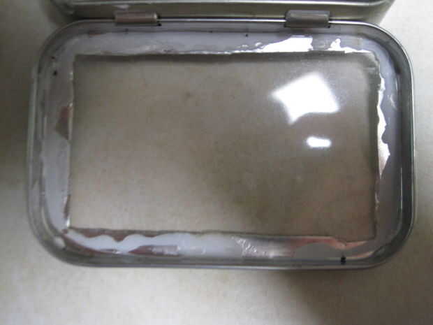 Tomar una ficha y hacer una plantilla que se adapta en su tapa. Después de consultar, utilice la plantilla para cortar un pedazo de estireno/vinilo/plástico transparente. Esto pegue con pegamento blanco. Pegamento para disolver el plástico. Luego darle la vuelta boca abajo, poner peso sobre y esperar 24 hrs. Arreglar cualquier bit que sale con la cinta.