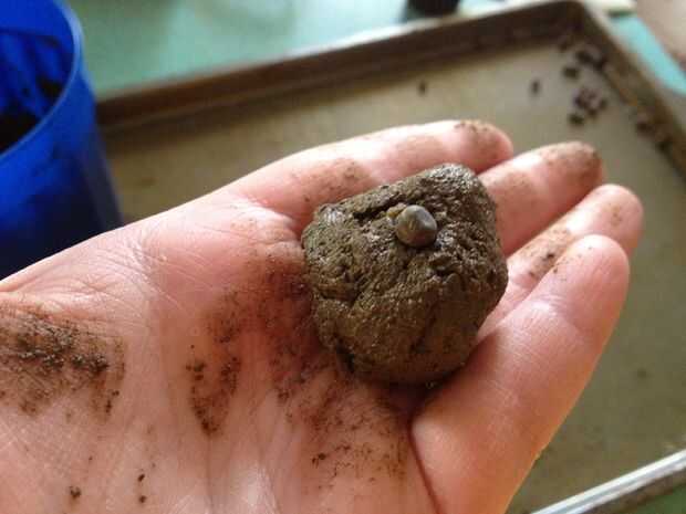 Rodar su bola de barro, pulse en la forma que desea con la punta de su dedo y luego meter una semilla en el centro y sellar el barro alrededor de él. Seguir trabajando de la forma que desee y la textura suave en la parte superior.