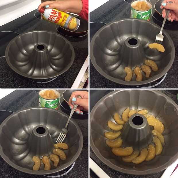1. spray aerosol de cocina antiadherente a la bandeja de la torta y cubrir completamente.