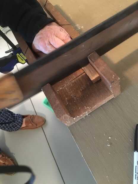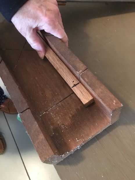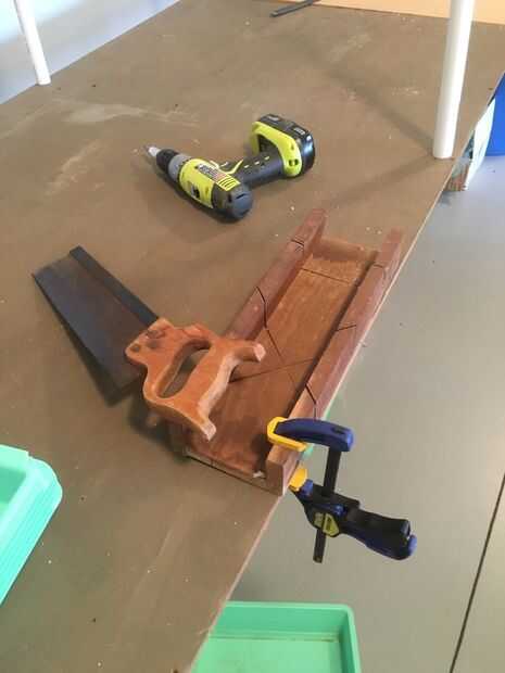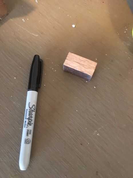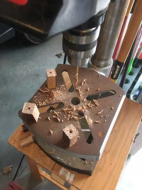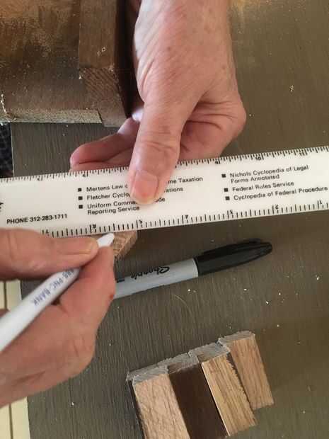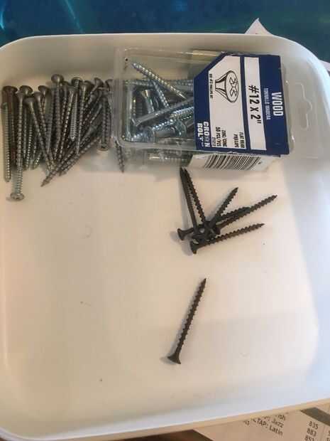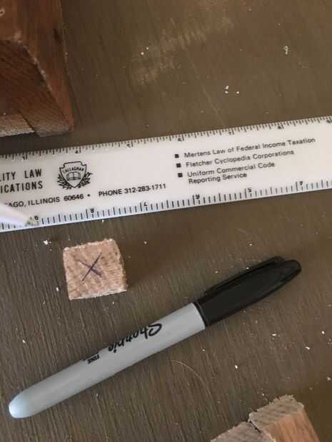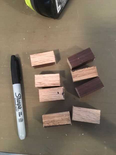Luego ir a través de su tornillo al azar de la caja y encuentra un set de tornillos que atraviesan la longitud de la pieza de madera y entrar en la madera contrachapada de media pulgada. Que utiliza dos tornillos para esto, así que corte los pedazos pequeños de madera de 1.5 pulgadas de largo con una mano vio y soporte por lo que se cortaron cuadrados--para este paso, es muy importante ser cuadrado!