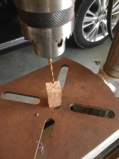 Una vez que corté había ocho de estos pedazos de madera, cuidadosamente había medido desde el borde del tablero y hace una x en el extremo de la pieza de madera para encontrar el centro. Usé un taladro para perforar previamente una pequeña bodega para el tornillo asegurar que el tornillo atravesó la madera recta. Utiliza una pinza para perforar el agujero, pero no fotografiar la pinza para este paso. A continuación atornillar la pieza de madera en el tablero y poner el trozo de tubo sobre la parte superior de la pieza pequeña de madera. Ahora si el gato más vaga para investigar todo el asunto no caerá sobre él!
