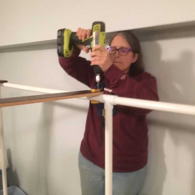 Ahora que el marco de PVC está ensamblado y estabilizado, su tiempo para construir la estructura de madera que serán colgadas las luces.