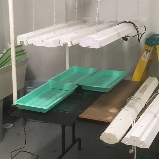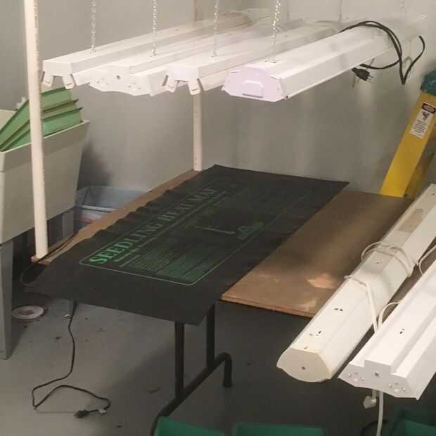 Algunas plantas requieren temperaturas más cálidas para germinar, por lo que varias de las bandejas de planta se colocan encima de mantas calentadoras. Las bandejas de planta se colocan encima de los calentadores y las macetas del suelo y la semilla se colocará encima de ellos. Asegúrese de que no hay algún agujero en la parte inferior de las bandejas de planta porque no mezclan agua y electricidad y los cojines de calefacción son caros.