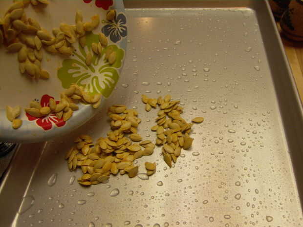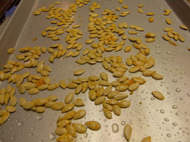 ¿Acaba de terminar talla su Jack-o-lantern Halloween y quieren hacer uso del resto de la calabaza? ¿Está buscando una alternativa más sana a merendar en las patatas fritas? Aquí es una receta rápida y sencilla para las semillas de calabaza asadas pic