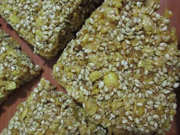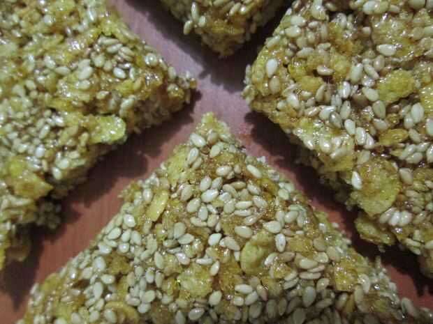 Semillas de sésamo y copos de maíz instantáneas. (8 / 8 paso)