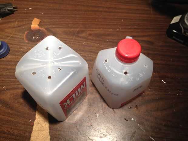 Puede utilizar recipientes de leche o los envases claros.  Porque necesitan luz no usar recipientes oscuros.  Lavar bien el recipiente y luego perfore los agujeros en la parte inferior para el drenaje y taladro en la parte superior para ventilación.  Esto necesita en el tiempo más cálido de la primavera.  Se marque y luego corte el envase en dos secciones.  Etiqueta los recipientes con lápiz.  He encontrado que plumas, lápices y sharpies incluso tienden a desaparecer pero lápices de grasa permanecer legibles toda la temporada larga.  Yo uso lápices llamados China marcadores pero cualquier lápiz de grasa va a hacer.